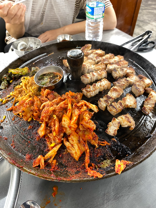 목구멍 식당에서 삽겹살 먹음.