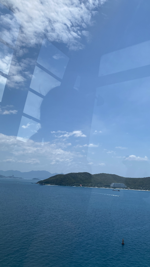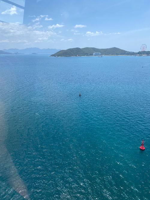 르모어 호텔에서 조식. 가성비 걸맞은 음식. 호텔 주변 상점에서 아쿠아슈즈 3개 구매. 빈원더스 케이블카 타러 그랩으로 이동. 14분 93,600동. 케이블카로 빈펄 섬으로 이동.