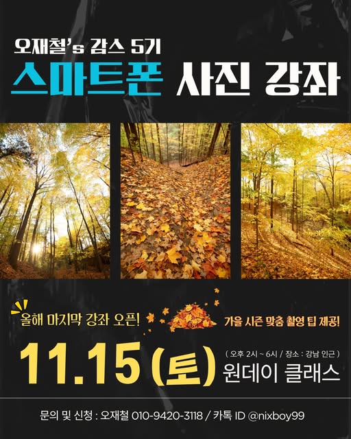 이번 수업은 ‘가을 시즌 맞춤 촬영’팁을 포함하여