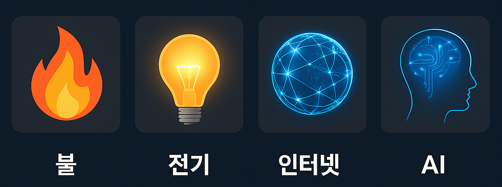 인류의 역사를 돌아보면, 문명의 궤도를 완전히 바꾼 순간들이 있습니다. 그것은 새로운 불꽃의 발견이었고, 그 불꽃은 인간을 한 단계씩 진화시켰습니다. 불, 전기, 인터넷, 그리고 AI. 이 네 가지는 단순한 기술이 아니라 인류가 스스로를 재정의하게 만든 거대한 불꽃이었습니다.