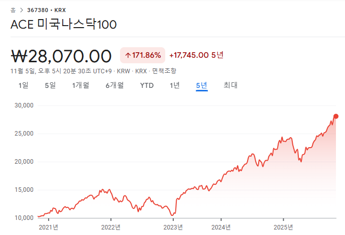 1️⃣ ACE 미국나스닥100 — 미국의 성장 엔진을 통째로 담다